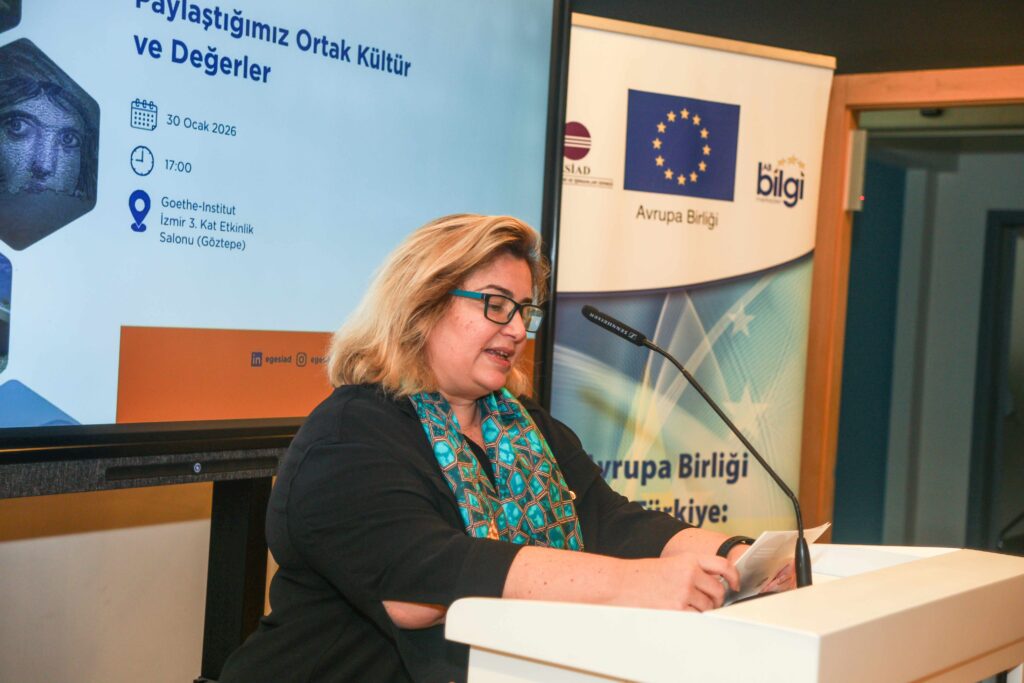 Goethe Enstitüsü İzmir’in, Göztepe’deki merkezinde düzenlenen törende konuşan ESİAD Yönetim Kurulu Başkanı Sibel Zorlu, kültürel mirasın korunmasının toplumsal kalkınma ve ortak gelecek inşasındaki stratejik önemine vurgu yaptı. Sürdürülebilirliğin sadece ekonomik değil, kültürel bir boyutu da olduğunu belirten Sibel Zorlu, “Ekonomik dayanıklılık kadar, kentlerin hafızasını koruyabilme becerisinin de kalkınmanın önemli bir parçası olduğuna inanıyoruz. Kültürel miras, bu açıdan bakıldığında, geçmişe ait bir mesele olmaktan ziyade geleceğe dair alınmış bir tutumdur. Nasıl şehirlerde yaşamak istediğimiz, hangi değerleri birlikte taşıyacağımız ve bu coğrafyada nasıl bir ortak hikâye kuracağımızla doğrudan ilişkilidir. Bu serginin, bir arada yaşama kültürünün en köklü duraklarından İzmir’de açılıyor olması ise ayrıca anlamlıdır” dedi.