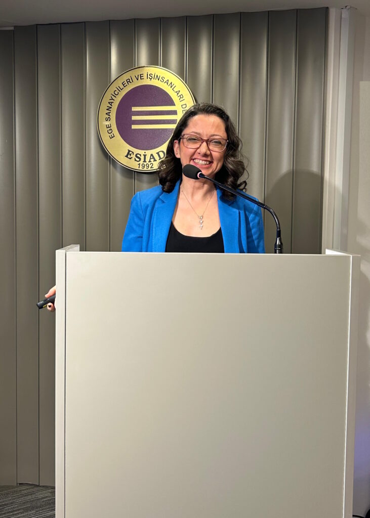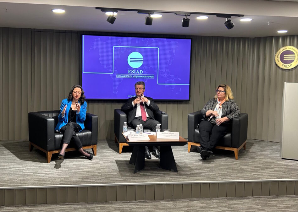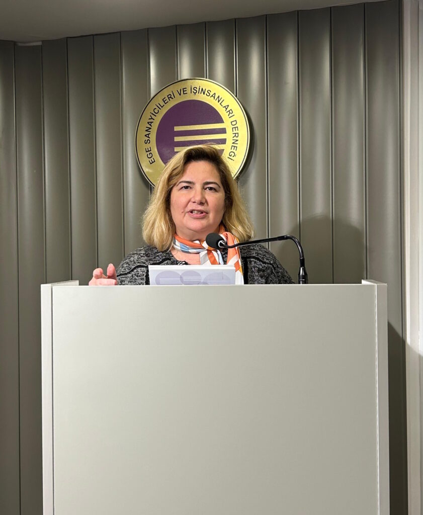 ESİAD Ekonomi Gözlem Grubu’nun katkılarıyla hazırlanan “Türkiye Ekonomisine İlişkin Değerlendirmeler ve 2026 yılı Üye Beklenti Anketi Sonuçları” dernek merkezinde düzenlenen toplantıda açıklandı. Dışişleri Bakanlığı İzmir Temsilcisi Büyükelçi Yeşim Kebapçıoğlu, Türkiye Sınai Kalkınma Bankası (TSKB) Direktörü ve Başekonomisti Dr. Burcu Ünüvar’ın konuk konuşmacı olduğu toplantıda ESİAD Ekonomi Gözlem Grubu Başkanı Muhittin Bilget de 2026 yılında Türkiye ve dünya ekonomisine ilişkin bir sunum yaptı.